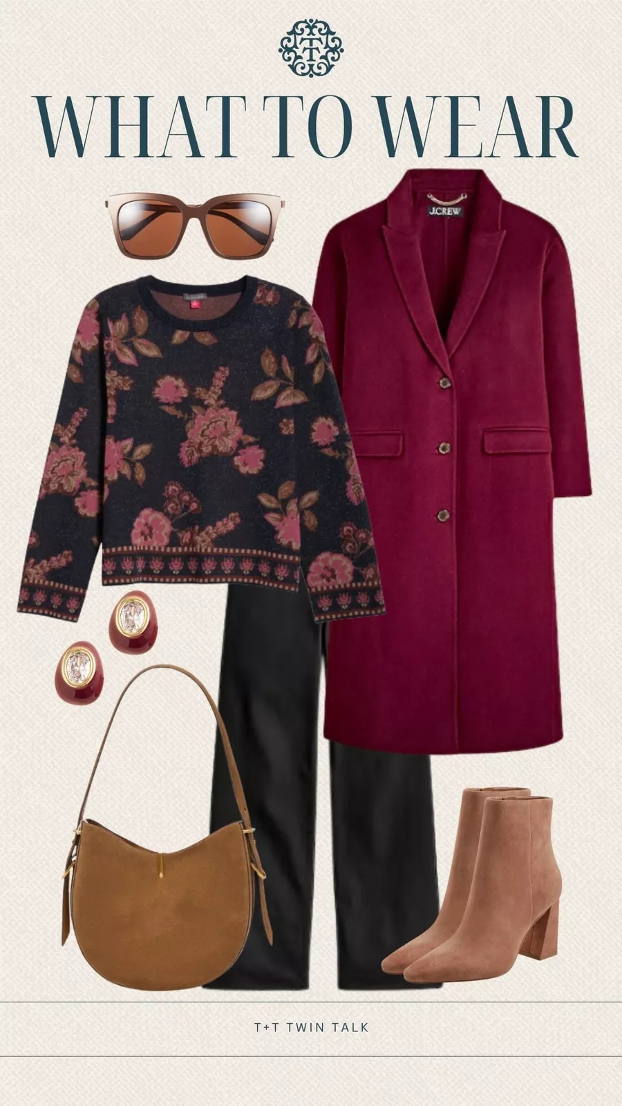 Floral prints can feel right at home in winter when they’re done in deep, moody tones. We love pairing this floral sweater with black trousers and a berry coat for a pulled-together look that’s perfect for a holiday brunch or casual party.