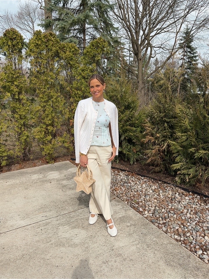 You will definitely be the star of the show with this star raffia bag! It goes perfectly with the beige Cosmo pants and this adorable top for a look that feels whimsical yet completely pulled together. Perfect for a weekend stroll, with hopefully some shopping!