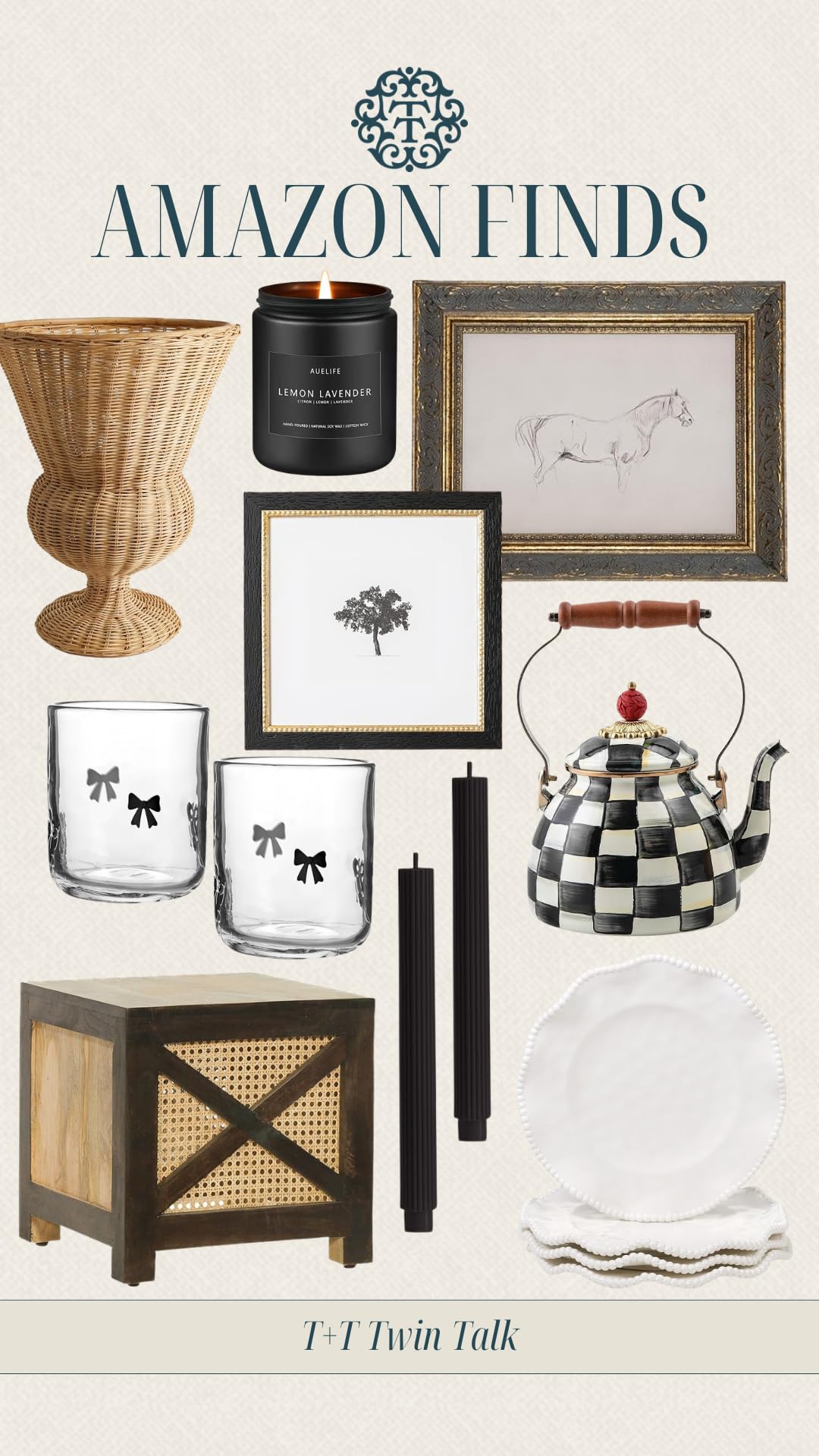 These are the types of finds that make a house feel personal. The framed art has that soft, vintage look that instantly adds warmth. The glassware and candleholders have a beautiful shape and weight to them, which makes them feel more substantial than typical Amazon decor. They’re small details, but they pull a room together.