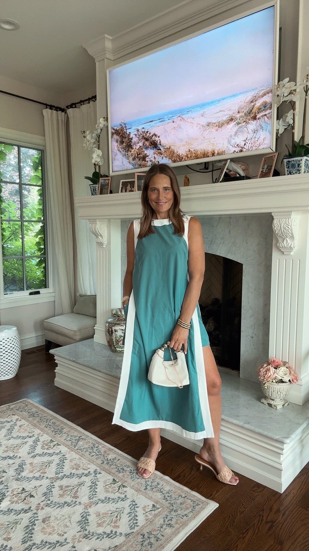 This green and white colorblock midi has such a quietly luxe feel. The crisp white trim against the rich green gives it structure and polish. We love this styled with sleek sandals and a structured mini bag. It feels confident, minimal, and effortlessly chic for a dinner out.