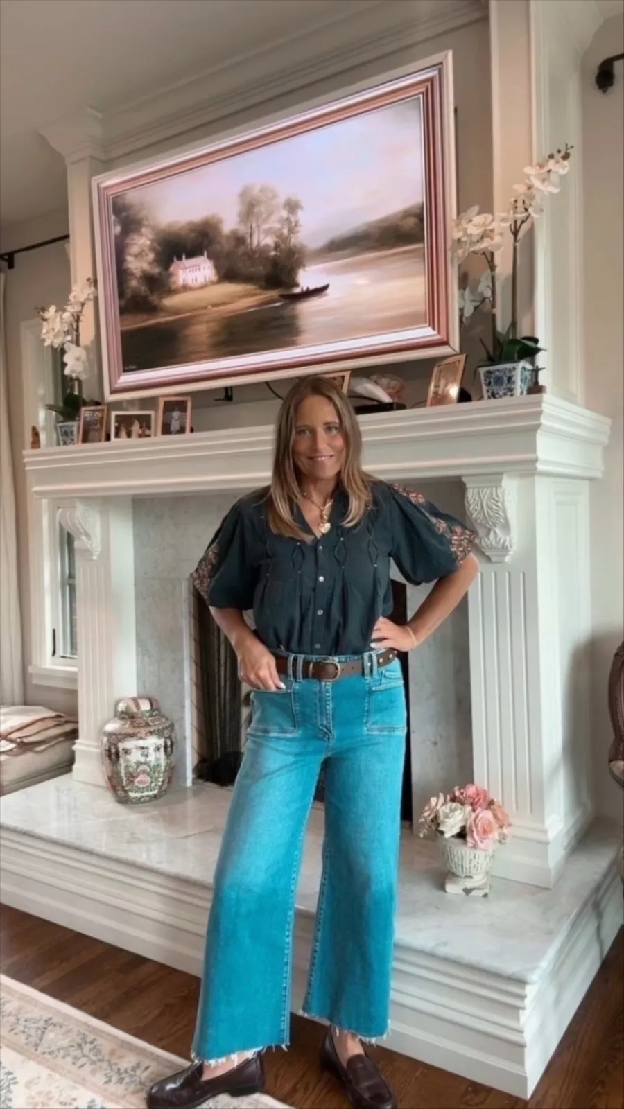 We love how this balloon sleeve top pairs with wide leg jeans from Social Threads. It is an easy outfit for grabbing coffee, heading to a meeting, or just running around town. The look feels effortless and stylish, making it a go-to all season long.