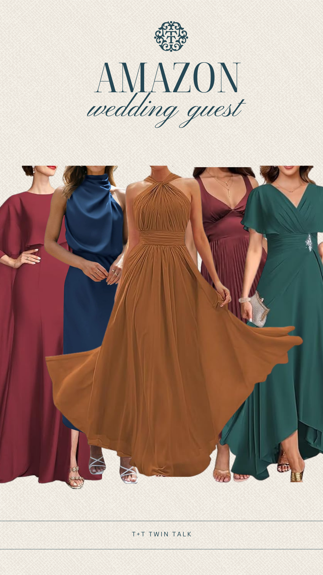 If you want a wedding guest dress with a dramatic look without the investment, these Amazon gowns are such a win. With flattering draped details and flowing fabrics, they feel high-end but come at a friendlier price point. The halter and off-the-shoulder cuts are especially flattering and will move beautifully on the dance floor.