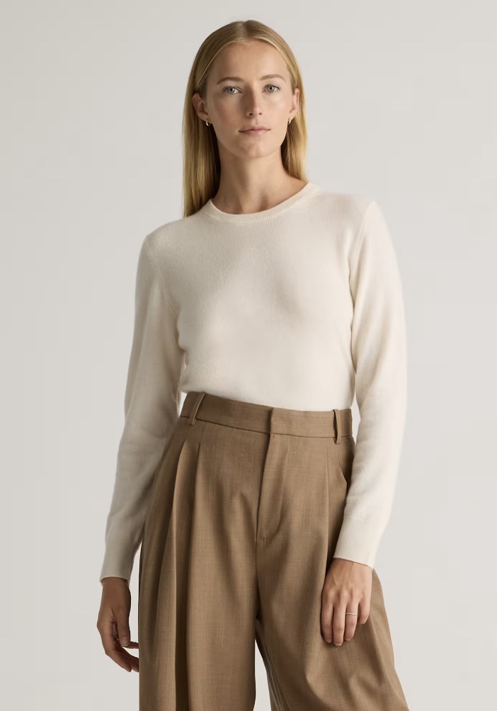 This sweater has been a cozy favorite. It’s lightweight but warm, and the neutral tone makes it so easy to pair with everything. We’ve been wearing it tucked into trousers for a cleaner look, or front-tucked into jeans with sneakers for something more relaxed. It’s the kind of piece that makes even a simple outfit feel thoughtful.