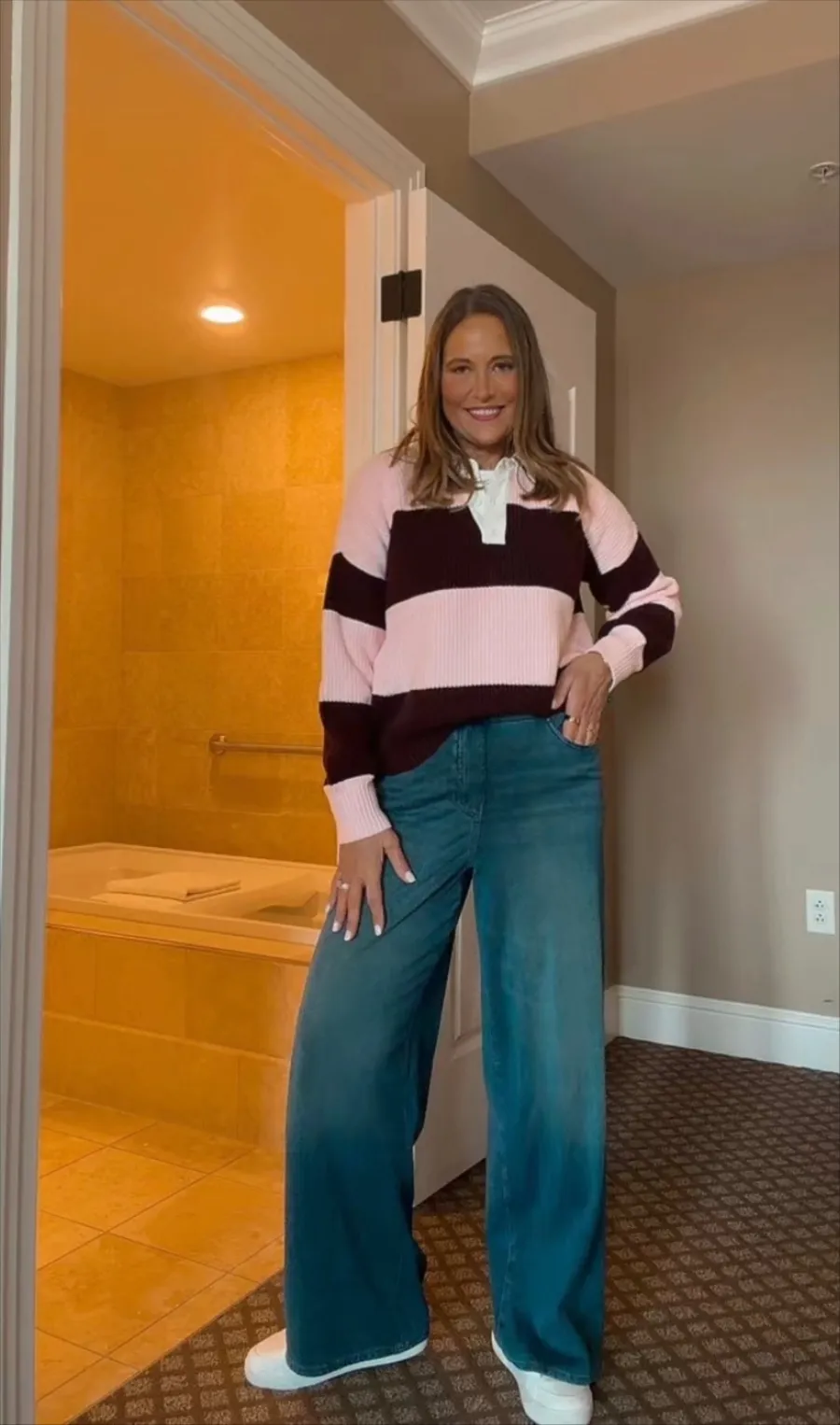 This one is such a moment. The heart print denim feels playful without being over the top, and the matching top makes getting dressed completely effortless. It’s the kind of outfit that instantly feels styled even though you didn’t have to think too hard about it.